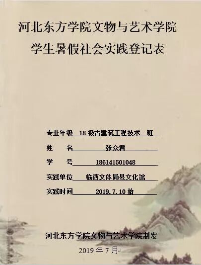 “彼此当年少,莫负好时光。”为充实的自己的暑假,提升所学专业文化水平,积极响应学院号召,自7月10号起,我院18级古建筑工程技术专业一班的张众君同学主动到县文体局文化馆对口单位实习,开展了自己的实践活动——大美临西!