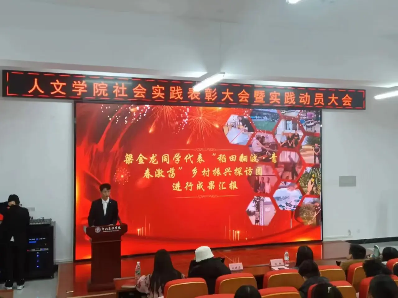 梁金龙同学代表“稻田翻波·青春激荡”乡村振兴探访团进行成果汇报