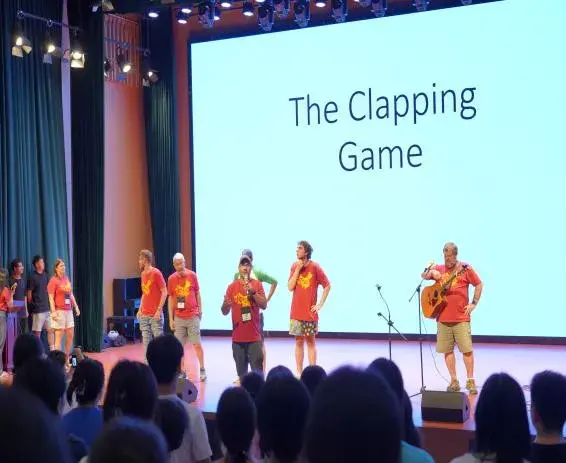 同学们与外教老师们拍手互动,现场气氛热烈,渐入佳境。
