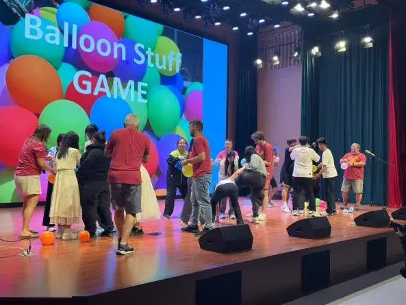 随着活动的推进,外教老师们精心准备的游戏环节成为了今晚的一大亮点,迅速点燃了现场的气氛。他们巧妙地将英语学习和游戏相结合,让同学们在轻松愉快的氛围中锻炼英语口语和听力能力。同学们也展现出了极高的参与热情,纷纷举手抢答,与外教老师们默契配合。游戏过程中,现场不时爆发出阵阵欢笑声和掌声。