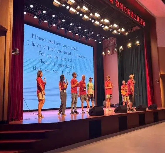 活动逐渐进入尾声,外教老师们献唱《Love Story》,为“英语之夜”画上浪漫句点。当熟悉的旋律响起,现场的气氛瞬间被推向了高潮。在这首歌曲的陪伴下,我们仿佛置身于一个美好的爱情故事中,感受着爱的甜蜜与温暖。