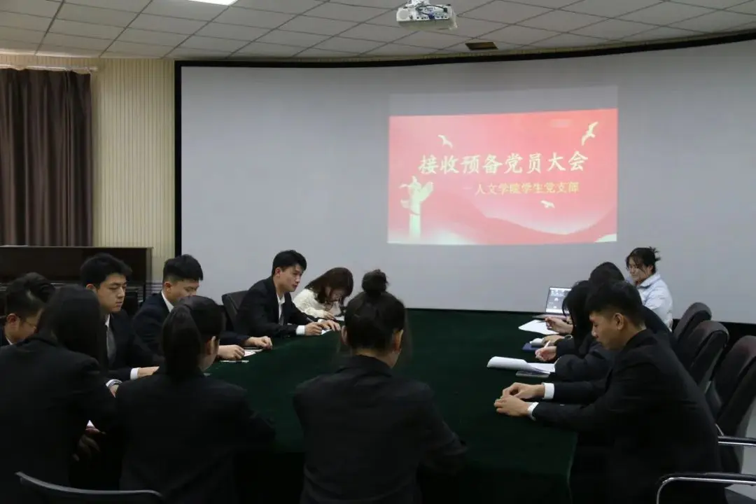 11月14日,我院学生党支部召开了2023年下半年接收预备党员大会,会议由学生党支部书记刘鹏程同志主持,人文学院党总支书记谢敏同志、全体党员、预备党员以及发展对象参加了本次会议。