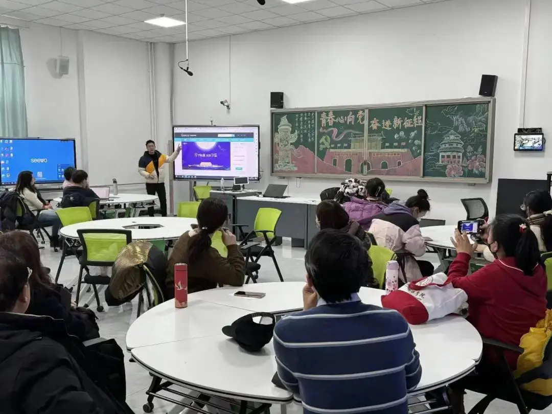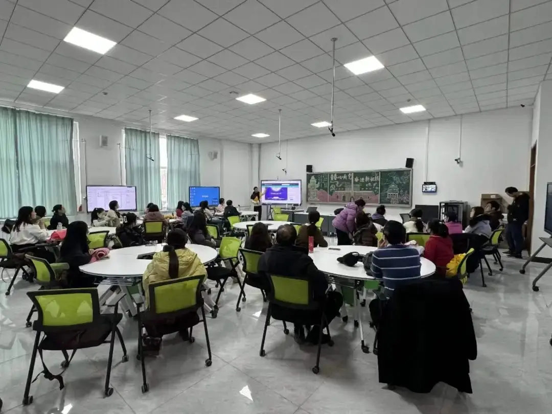 近日,我院情景智慧教室建设完成。1月30日下午,我院于文华楼101教室组织了智慧教室专项培训。北京外研在线工程师就情境教室具体功能、使用方式方法等方面对我院外语系相关教师进行了培训。本次培训通过理论讲解、案例分析、实践操作等多种形式,让教师们深入了解智慧教室的内涵、功能、应用及管理等方面的知识,旨在提高教师们的教学技能和课堂管理能力。