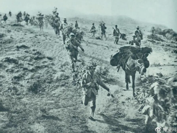 ▲图为1947年5月在孟良崮战役中,华东野战军向孟良崮挺近。